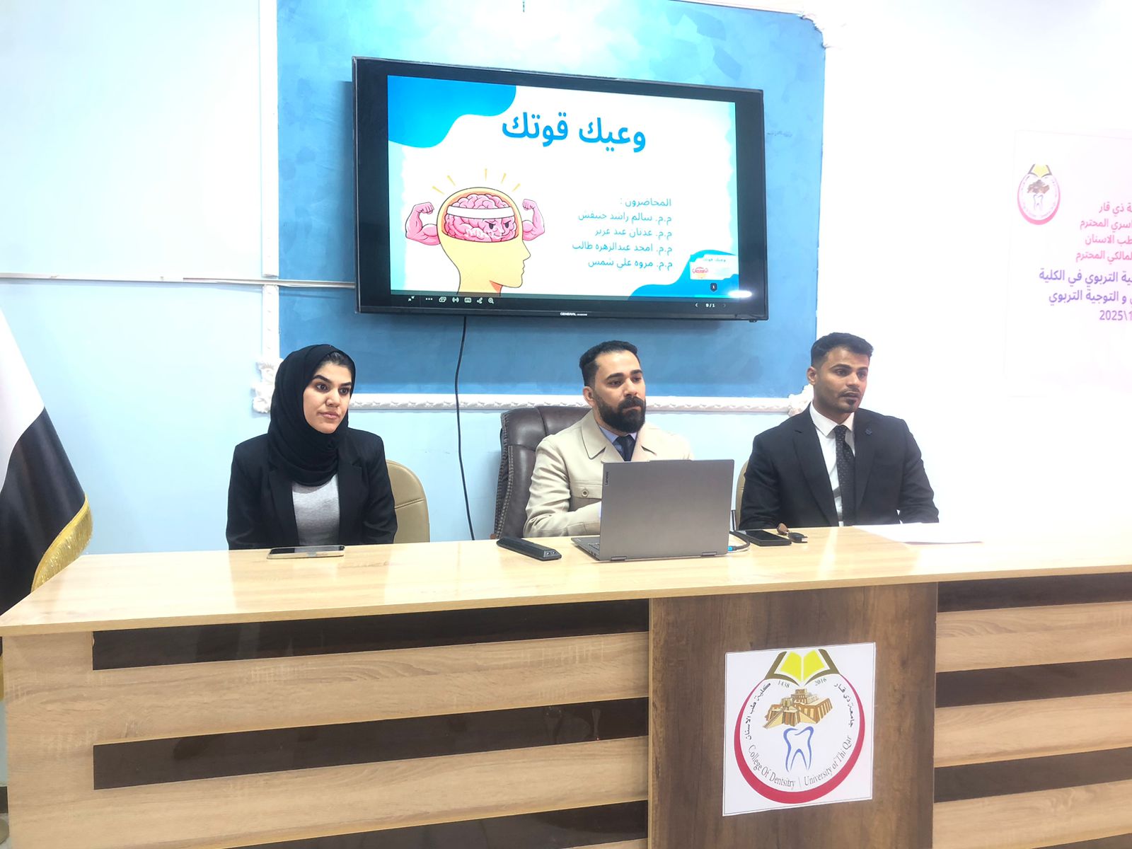 ورشة حضورية تحت عنوان (وعيك قوتك)أقامت وحدة الإرشاد النفسي والتوجيه التربوي بالتعاون مع وحدة التعليم المستمر في