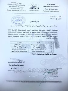 وزارة التعليم العالي والبحث العلمي تصدر أمرًا وزاريًا بتعيين الأستاذ الدكتور مشتاق نعمة المالكي عميدًا لكلية طب الأسنان في جامعة ذي قار بالاصالة ، يأتي هذا التكليف تقديرًا لمسيرته العلمية المتميزة، وجهوده في خدمة الجامعة والارتقاء بالواقع الأكاديمي والإداري في الكلية.